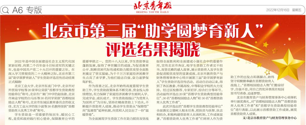 首都助学圆梦育新人评选结果揭晓,北京市教育资产与财务管理事务中心将择机举行颁奖典礼,对“首都学生资助典型经验单位”“首都资助育人优秀工作者”和“首都校园励志人物”进行表彰。Beat365牧医系韩静儒同学入围励志人物,向社会展示了学院三全育人和资助育人的优秀成果。