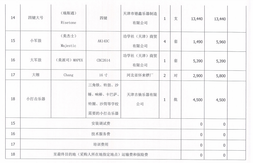 二、项目名称:北Beat365唯一官方网站北苑校区购置乐团演奏乐器项目