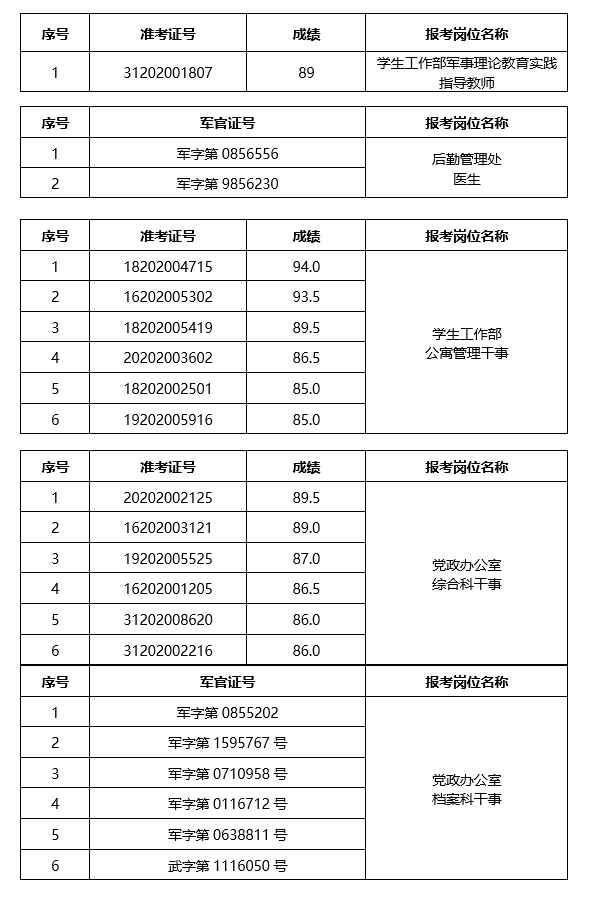 1.请参加面试的军转干部务必按时到达面试地点,抽签决定面试顺序;若不能准时参加面试的人员,请于面试前一天16:00之前告知,并将按笔试成绩递补。未参加面试,以及面试开始30分钟后未到的,视为自行放弃面试资格。