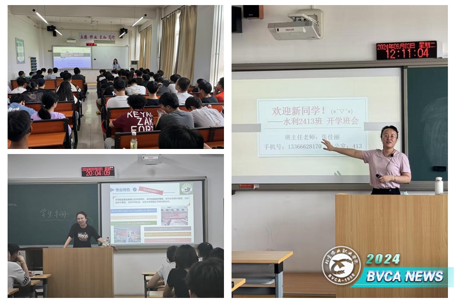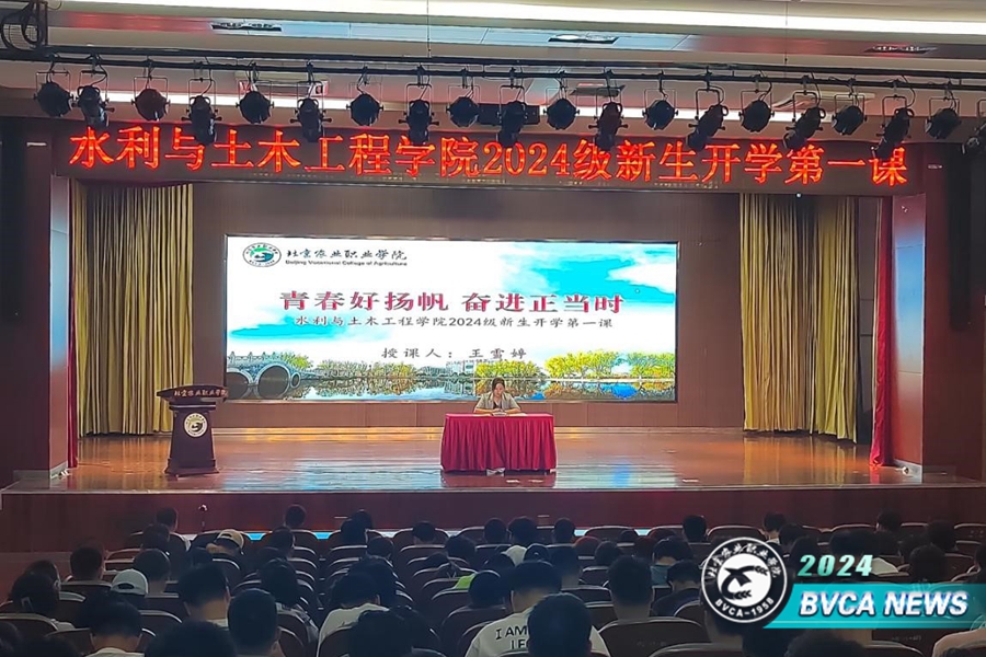 9 月 3 日下午,水利与土木工程学院 2024 级新生开学第一课在学术报告厅举行。党总支书记王雪婷,学生工作办公室主任张文培,辅导员、新生班主任参加。会上,同学们观看专业群建设成果宣传视频,老生代表分享军训经验,学办主任进行军训动员并明确注意事项,辅导员讲解学生手册重点内容。王雪婷同志为新生讲入学第一课,从学校发展历程、学院特色优势等方面进行宣讲解读,并提出希望。各班召开班会,班主任进行安全教育并加强《学生手册》学习,各专业主任组织专业教育。