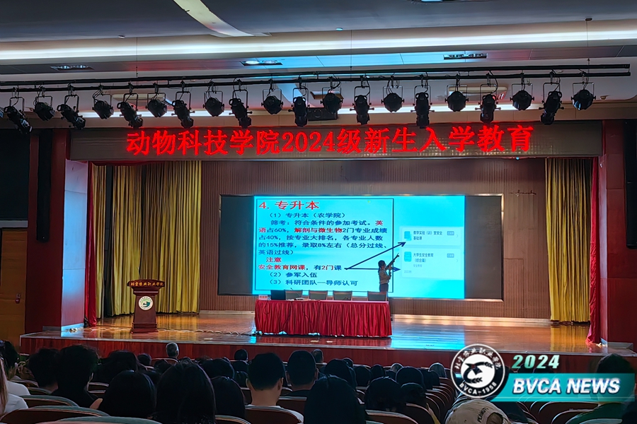 动物科技学院于 9 月 4 日在报告厅举行 2024 级新生入学教育,动科学院领导班子、辅导员、班主任及 479 名新生参加。院长周珍辉以近几年优秀毕业生的风采为例,为新同学讲开学第一课,鼓励新生以优秀毕业生为榜样,提高自我管理能力,树立奋斗目标,学好本领,实现人生价值。副书记齐军喆从遵守纪律和安全的角度讲解了《学生手册》部分内容,并对新生军训进行动员。党总支书记刘洪超从立大志、求知识、强身体和心中充满爱四个方面对新同学提出希望和要求。今后一段时间,新生教育将组织学习《学生手册》、主题班会等系列活动,学办老师将为新同学答疑解惑。
