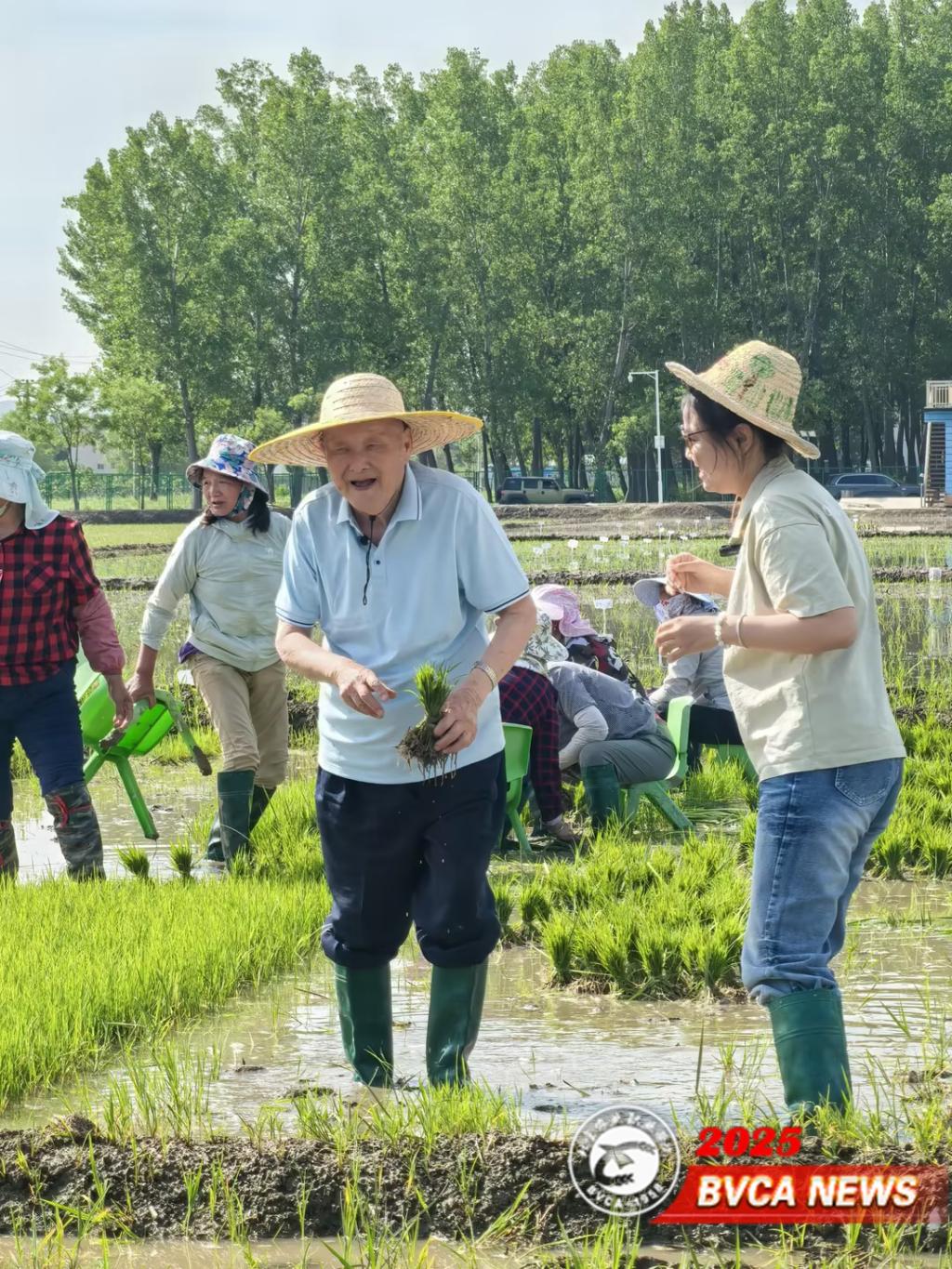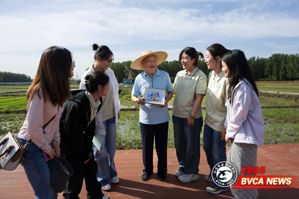 87岁高龄的李增高老师精神矍铄、耳聪目明,腿脚利索的领着同学走进稻田,一边示范插秧技巧,一边详解秧苗生长特性。访谈中,他回顾了在青年农场扎根田间劳动和参与建设学校的青春故事,分享了毕业后深耕水稻育种的奋斗历程,讲述了退休后继续倾力投入京西稻研究的感人事迹。无论是响应党中央做新中国第一代有文化的农民的号召,还是60多年始终如一的躬耕水稻研究,他用一辈子的实际行动诠释了爱党报国、无私奉献的理想信念,让师生们深受触动,不仅近距离感受到了老一辈农职人的奋斗精神,更从其丰富经历中汲取到宝贵的精神财富与人生智慧。采访结束时,李老师还殷切嘱托同学们要树立远大的理想,永葆奉献精神。