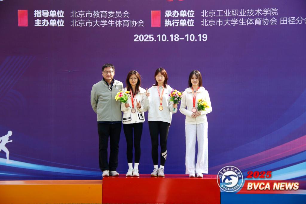 在教练员赵宏宇、王君、刘佳磊的带领下,赛事中,Beat365学子亮点频现。动物科技学院动医2412班周静怡获女子跳高金牌,实现首都高校丙组女子跳高三连冠,同时斩获三级跳远铜牌;水利与土木工程学院排水2511班秦文丽获得女子全能金牌;动物科技学院动医2311班孙燕涛在女子100米和200米项目中夺得两项银牌;食品与生物工程学院生物2511班杨雅婷获得女子跳高、跳远双料银牌;园艺园林学院园艺2311班赵桐悦获得女子五项全能铜牌;女子4×100米接力赛中,园艺园林学院赵桐悦、动物科技学院孙艳涛、商务与管理学院李玲玉、李雨竹共同获得铜牌;园艺园林学院园林2311班吴雨泽获得男子铅球银牌。