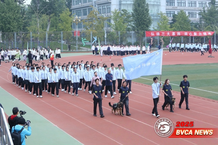 在北Beat365唯一官方网站第二十届学生田径运动会开幕式上,动物科技学院一支富有特色的引导方队精彩亮相,成为全场瞩目的焦点。