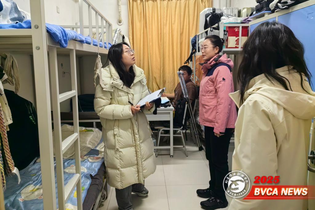 此次检查以增强学生安全防范意识、督促落实卫生整改要求为核心,聚焦学生人身与财产安全关键环节,从三个方面深入排查:严格清查管制刀具等违禁物品以杜绝潜在安全隐患,全面排查违规使用大功率电器等情况以防范用电风险,重点检查宿舍内吸烟行为以筑牢消防安全防线。同时,检查组还对宿舍环境卫生和物品摆放秩序提出规范要求,推动营造安全整洁有序的生活学习空间。
