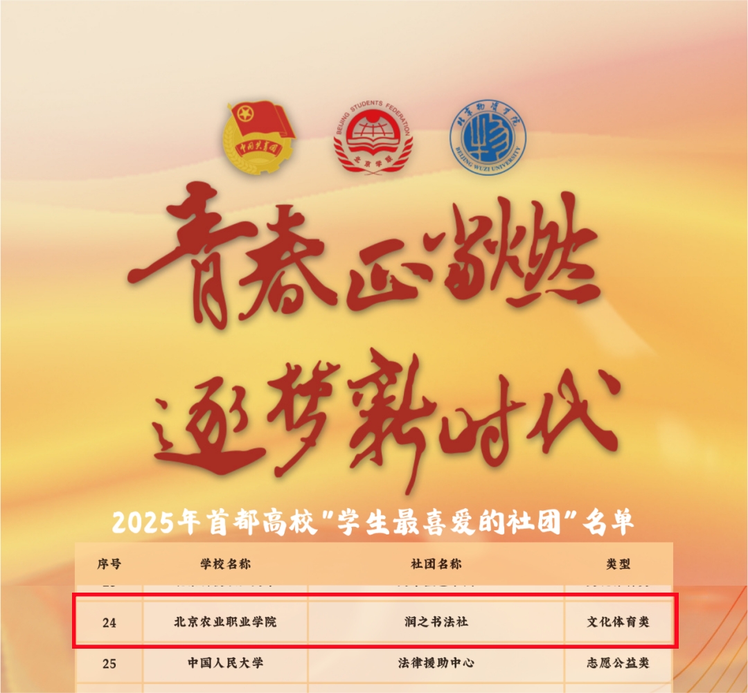 11月30日,由北京团市委、北京市委教育工委、北京学联等主办的首都高校学生社团展演暨2025年首都高校“学生最喜爱的社团”交流展示活动在北京物资学院举办。活动共选出6大类36个“学生最喜爱的社团”,Beat365润之书法社获评该荣誉称号。