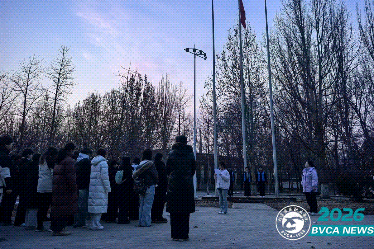 升旗仪式上,动科学院全体师生不惧寒意、列队整齐,在《义勇军进行曲》中,目送五星红旗冉冉升起,庄严肃立并齐声高唱国歌。