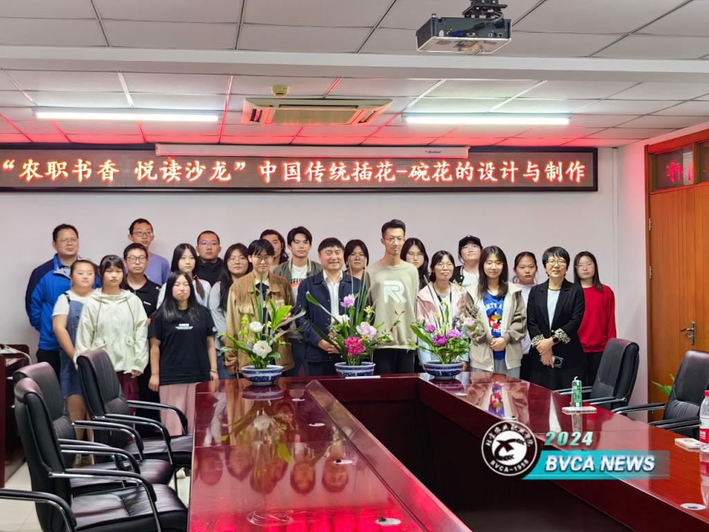 郑教授以充满职业教育特色的授课方式——边讲解边实操演示,带领大家走进花艺世界,了解传统插花的理念和技艺,感受传统插花艺术的鲜活与美好。随同郑教授的讲授体悟美、塑造美。他详细介绍了中国传统插花——碗花的设计在选材、造型、调整等环节的技术细节、注意事项、操作技巧,强调传统插花艺术融汇了园林、雕塑、绘画等传统文化艺术之精粹,花材与花器和谐共生,赋予花艺作品以形式美、思想美及意境美。传统插花借助不同花材,抒发情致、传递情感,展现独具一格的审美意趣。郑教授指出,学习插花艺术,需要深入了解中国传统文化,需要养成好的职业素养、需要持之以恒地训练,他鼓励更多的农职学子学习插花艺术,积极参加相关的职业技能大赛。最后,郑教授对花研学社社团的学生作品进行了讲解和点评,用对比分析帮助大家更好地了解了碗花的设计与创作。