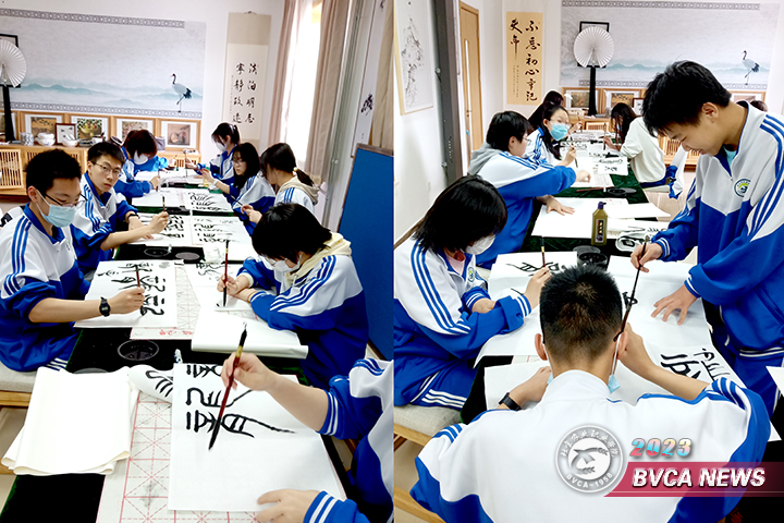 本学期北苑校区成立了书法社团。在老师的指导下,已完成了书法概论、篆书、隶书的学习,对书法艺术有了一定的认识,初步掌握了篆书和隶书的书写规律及基本笔法。随后,书法社团将根据实际情况采取不同形式举办以爱国、励志为主题的书法作品展,让同学们在学习书法陶冶艺术情操的同时,增强爱国情怀,丰富校园文化环境。
