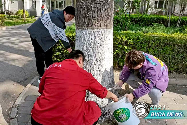 4月19日下午,清河校区团总支组织了一次在校生的志愿服务活动,即为校园内的树木“刷白”。在听取了后勤三分中心老师们的科普讲解后,同学们纷纷拿起手中工具,开始热火朝天地工作起来。