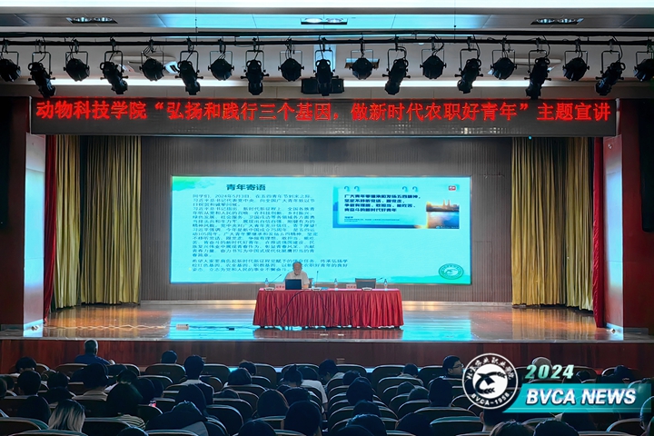 为深刻学习领会习近平新时代中国特色社会主义思想,弘扬爱国主义精神,传承学校红色基因、农业基因、职教基因,6月6日下午,动物科技学院在学院报告厅举办“弘扬和践行三个基因,做新时代农职好青年”主题宣讲活动,特别邀请到学院离退休党委书记、关工委副主任赵章彬为学院全体学生作“弘扬和践行三个基因,做新时代农职好青年”主题宣讲,动物科技学院党总支书记刘洪超、党总支副书记齐军喆及全体学办老师、班主任参加了此次活动,会议由刘洪超主持。