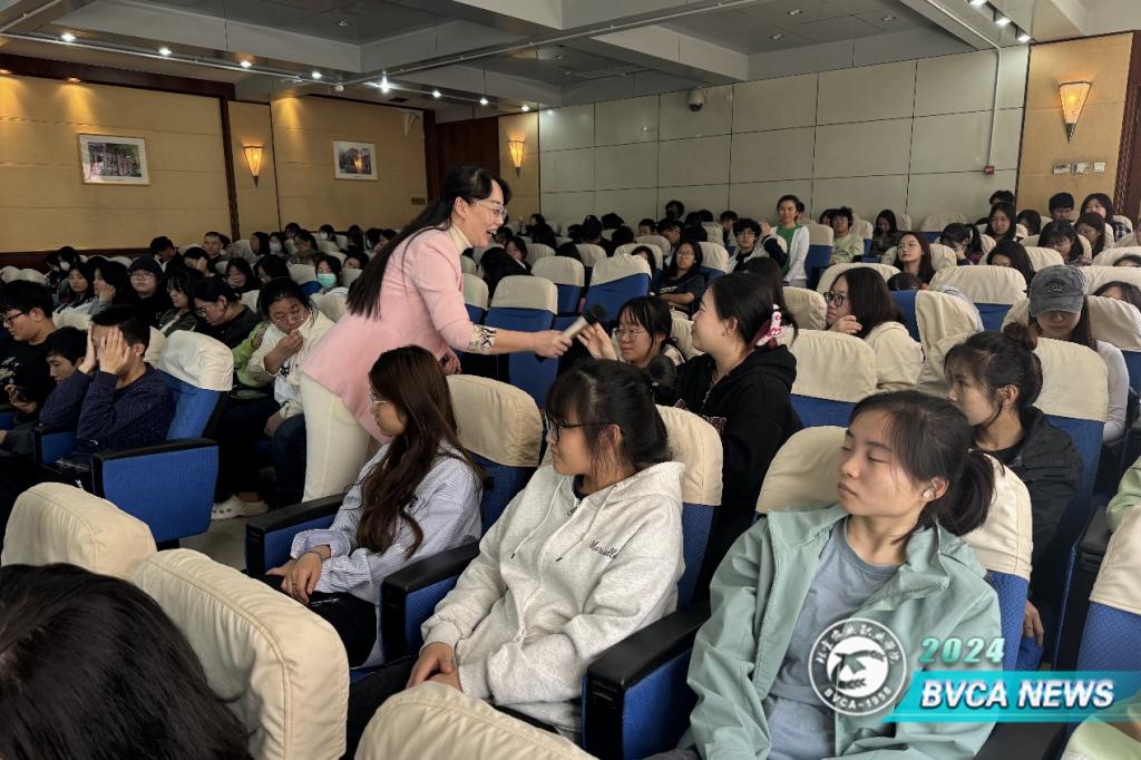 范丽君老师通过介绍《非暴力沟通》书籍的作者、译者,非暴力沟通的四要素即观察、感受、需要、请求等方面内容,与大家分享非暴力沟通的内容及核心目的。同时,结合中国传统文化及鲜活案例,向大家讲授如何在校园和生活中应用到非暴力思维及处理方法,帮助师生实现情意相通、相互关心的人际关系。活动现场师生积极互动,范丽君针对学生提出的宿舍关系沟通问题进行了“非暴力”思路的沟通指导和训练。