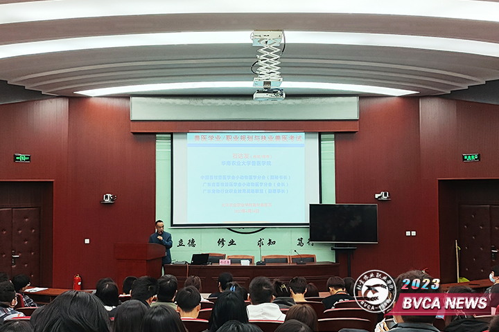 石达友教授就职业生涯规划和执业兽医师考试与同学们进行分享,激情澎湃地介绍了专业就业前景、在校生考取执业兽医师的重要意义、复习方法、报考技巧等。