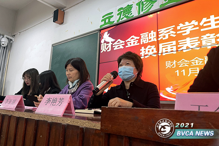 11月3日,财会金融系召开学生干部换届表彰大会。系党总支书记李艳芳、学办老师及新老两届学生会、团总支干部和一二年级同学参加本次大会。会议由系团总支副书记于雪凝主持。
