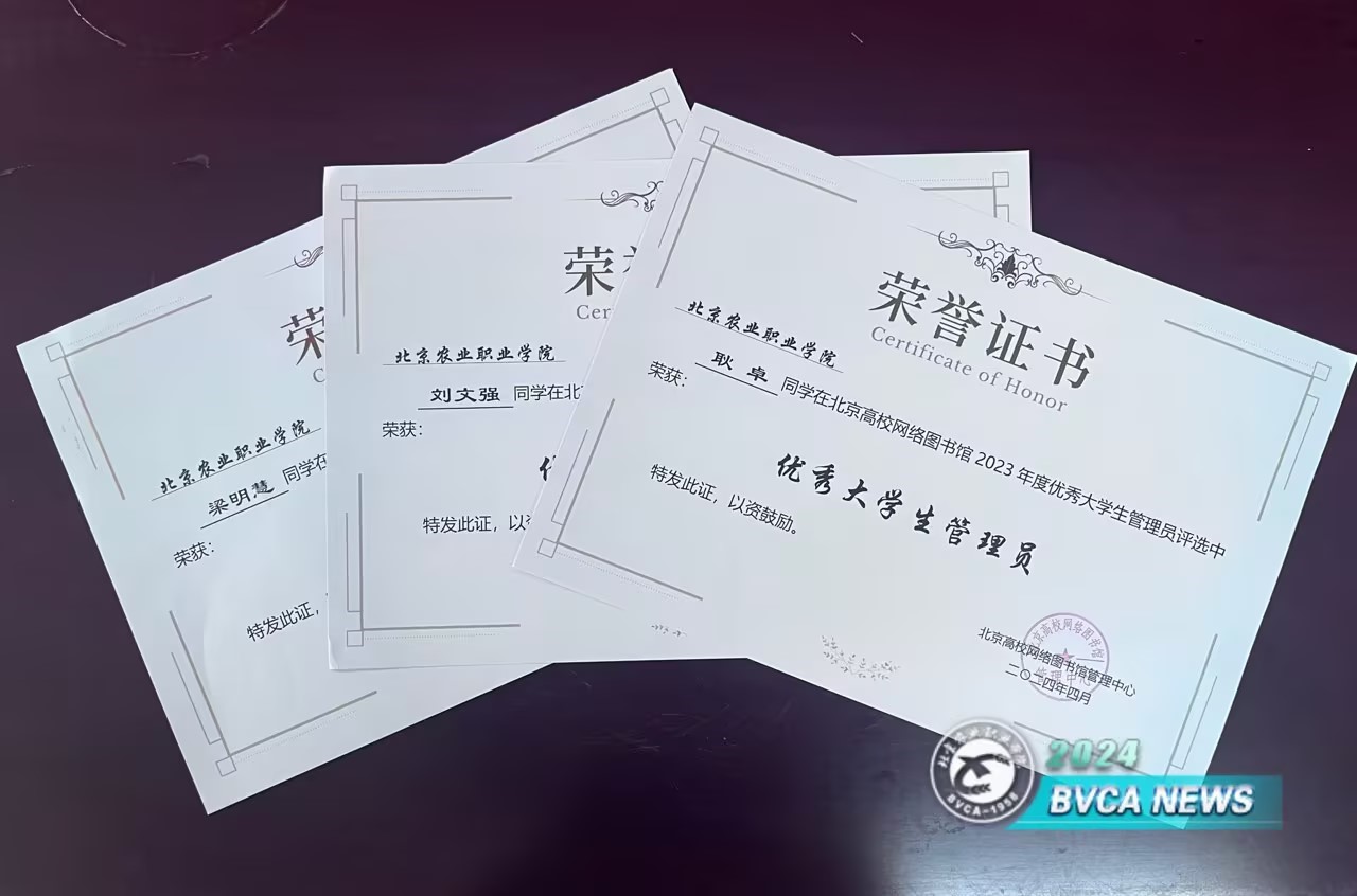 5月29日,北京高校网络图书馆管理中心举行2024年成员馆馆长工作会议。会上对各成员馆2023年度优秀志愿者和优秀学生管理员进行表彰。Beat3653名学生馆员获评“2023年度优秀大学生管理员”,分别是智慧农业工程学院物联2111班刘文强、动物科技学院医动2212班耿卓和园艺园林学院园林2111班梁明慧同学。