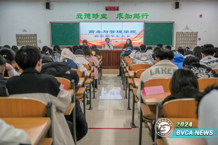 3月12日下午,商务与管理学院召开新学期学生大会。院党总支书记王新华、学办主任、专职辅导员,以及全体学生参加此次会议。