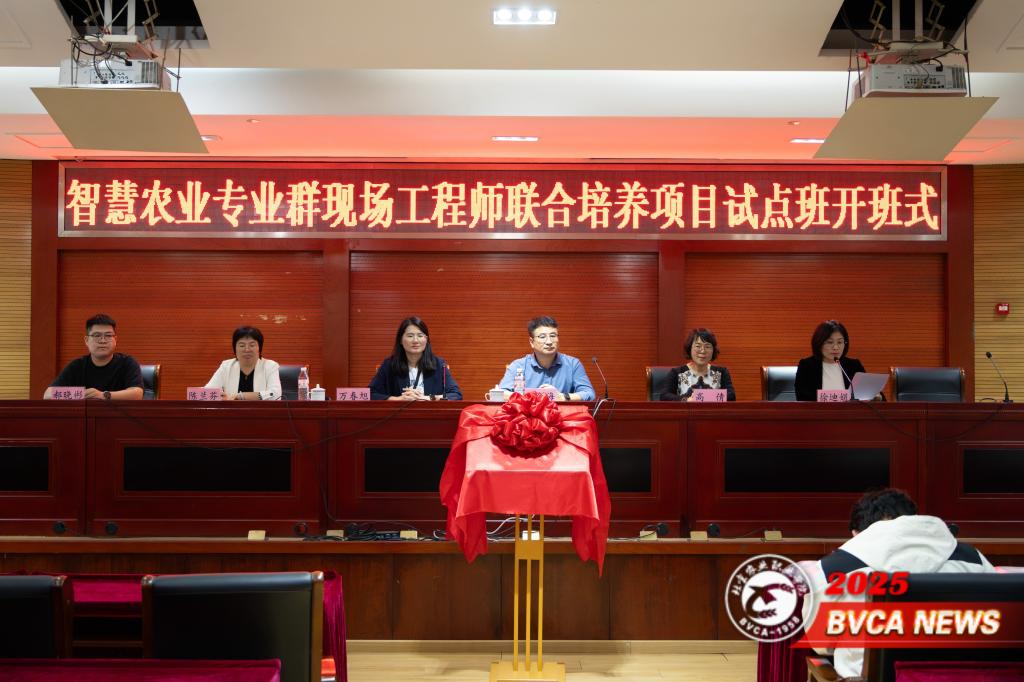 10月15日,智慧农业专业群现场工程师联合培养项目试点班开班式在长阳校区举行。学校教务处副处长陈兰芬、北京杰创科技有限公司总经理郑剑海,以及智慧农业工程学院党总支书记高倩、院长万春旭出席开班仪式。