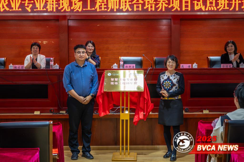 随后,校企双方领导共同为“智慧农业专业群现场工程师学院”揭牌。
