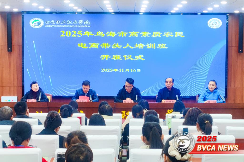 11月16日至19日,商务与管理学院在香山校区承办“2025年乌海市高素质农民电商带头人”培训班。内蒙古乌海市农牧局局长魏永辉,学校继续教育学院院长、资产公司董事长杨学坤参加开班仪式并致辞,商管院院长张晖主持仪式。