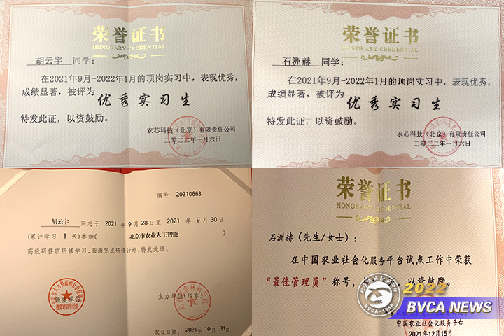 通过真实岗位锻炼,学生们的岗位技能和职业能力得到很大提升,工作表现受到企业的高度赞扬。4名学生进入国家农业信息化工程技术研究中心的下属企业农芯科技(北京)有限责任公司顶岗实习,其中2名学生被评为“优秀实习生”,实习期间还取得多项由企业提供培训机会的权威证书,实现了知识和技能的双提升。