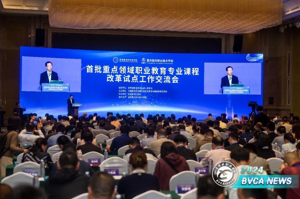 重庆航天职业技术学院党委书记王勇、中国教育科学研究院副院长于发友和高等教育出版社副总编贾瑞武作开幕致辞。会议设专家讲座、数字教材培训、分领域研讨、试点工作经验交流和分课程研讨等五个环节。与会专家围绕课程标准研制、课程资源开发、数字教材编写等重点任务展开研讨和交流。教育部职业教育与成人教育司教学与质量处处长张磊作会议总结。
