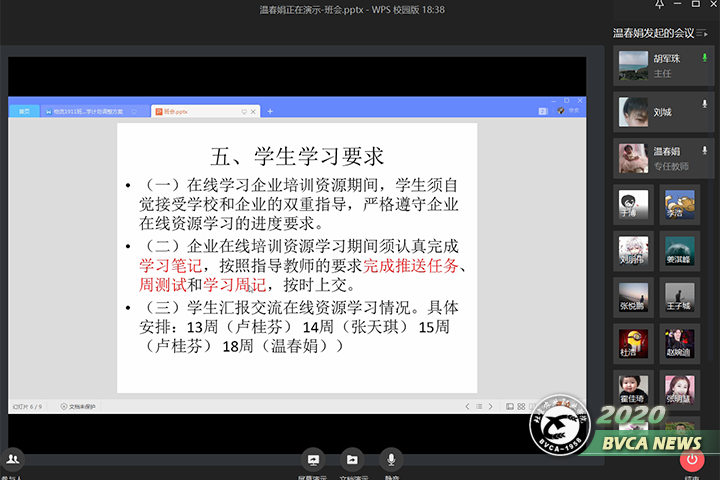 为保证学生企业线上培训资源学习顺利开展,5月5日,现代服务管理系物流管理专业召开以企业线上学习动员为主题的企业微信语音班会。物流专业主任、班主任和专业任课教师,物流专业1911店长定制班全体学生参加会议。