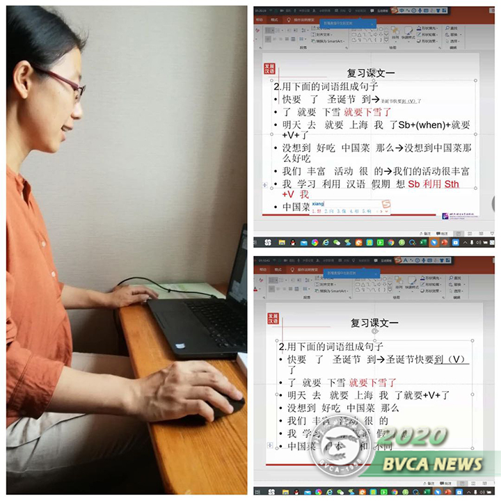 自6月1日起,泰国学生进行网上汉语学习,课程采用直播的形式,由北苑校区留学生部葛晶老师负责,泰国披集学院康静怡老师协助,每周一至周四进行网上授课,每周8学时,教学内容是上学期在中国所学汉语课程的延续。学生们在网上的学习情绪高涨,兴趣浓厚,能够积极配合老师完成教学任务,课后反馈及时。