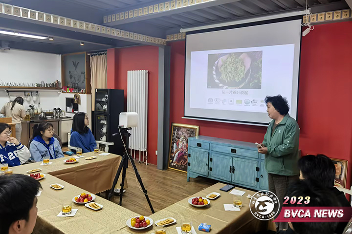 此次课堂开在东篱公司的大吉岭红茶屋线下体验店,公司负责人肖总提前沟通学情做了充分的备课,开讲“国际红茶——特色农产品国际贸易云端销售模式”,从一片茶叶说起,讲述中国和印度茶叶产品适种性的不同种类、产地文化与产品特色,带领同学们从干茶的条索发酵、冲泡茶汤色泽与香气、入口茶汤厚度苦涩与生津回甘认知茶叶。她指出茶叶这种最富有生命力的古老植物与如今的国际贸易农产品电商碰撞后,具有广阔的发展市场,并强调了做茶叶出口业务从业人员应注意培养的知识素养条件。