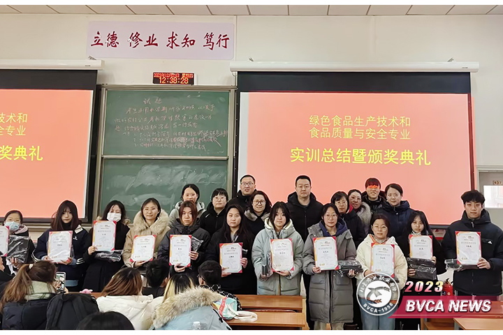近日,食品与生物工程学院绿色食品生产技术和食品质量与安全专业4个班举行了综合实训总结会,旨在表彰实训中表现突出的同学,树立榜样,分享经验。食安2212班庞凯丽等21名同学受到表彰,4名同学作为代表上台分享了实训体会和收获。