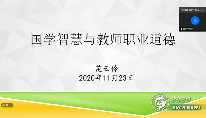 为加强师德师风建设,培养教师良好的师德风范,11月23日下午,经济管理系邀请首都经济贸易大学密云分校范云伶老师进行了“国学智慧与教师职业道德”为主题的讲座。讲座采取腾讯会议方式在线举行,经管系全体教职工参加。