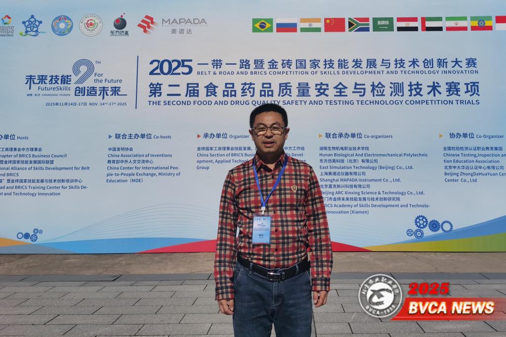11月14日至17日,2025一带一路暨金砖国家技能发展与技术创新大赛——第二届食品药品质量安全与检测技术赛项全国总决赛在湖南生物机电职业技术学院举行。食品与生物工程学院马长路教授作为行业专家受邀担任总决赛裁判,与全国各地资深专家共同执裁教师组比赛。他凭借严谨的评判标准、公正的执裁态度和深厚的专业功底,得到赛事主办方和同行专家的高度认可。