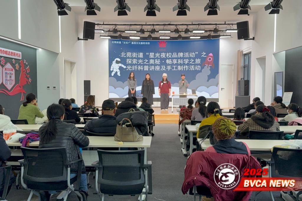 12月14日,通识教育学院联合通州北苑街道举办“神奇的光纤”科普活动。同学们通过趣味讲解和创意实验,为孩子们揭开信息传输“光速通道”的奥秘。