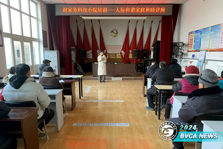 2024年1月12日,商务与管理学院赵家务村科技小院师生赴平谷区东高村镇赵家务村,开展了两场培训。培训主题为“农村人际和谐家庭和睦”及“休闲农业茶艺服务”, 40余人参加。