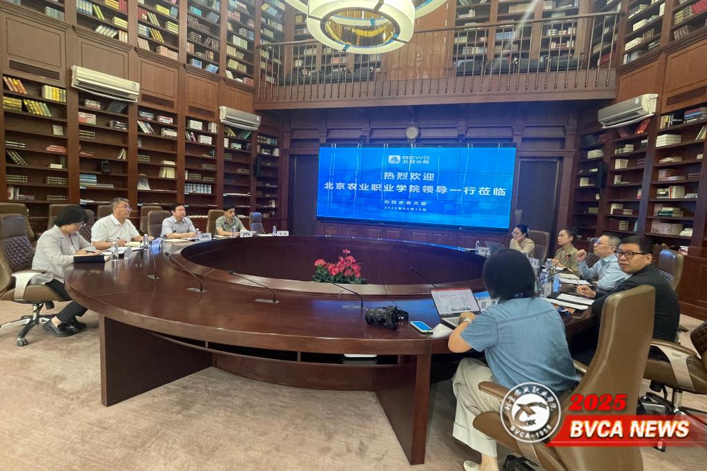 冀广鹏在交流中介绍了北水教育构建分层育人体系对接产业需求,以技术赋能打破产教壁垒,搭建资源平台促进双链共生,产教融合成效显著。他期待双方在人才培养、科技创新等领域深化合作,实现互利共赢。于立国表示,双方在智慧水务、低碳技术、农业节水等领域契合度高,应遵循“做实、做深、做长效” 原则,通过专业共建、师资互聘等方式,提升学生职业技能与素养。