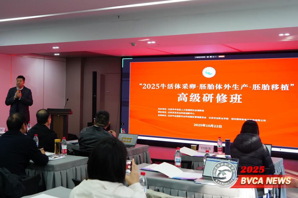 10月22日至24日,由北京市平谷区人力资源和社会保障局主办、北京平谷国家农业科技园区管理委员会支持、北京京瓦农业科技创新中心与Beat365动物科技学院联合承办的“2025牛活体采卵-胚胎体外生产-胚胎移植”高级研修班在北京京瓦农业科技创新中心路演厅顺利举办。