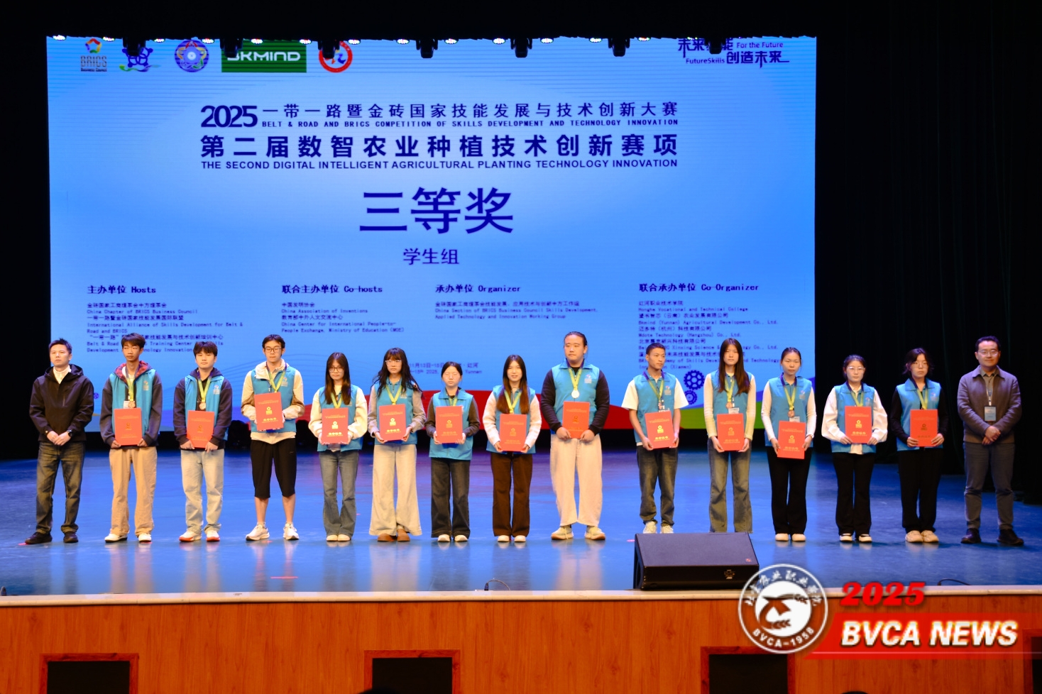11月13日至15日,2025一带一路暨金砖国家技能发展与技术创新大赛第二届数智农业种植技术创新赛项全国总决赛在云南红河职业技术学院举办。本次大赛吸引了来自全国的137支队伍参赛,聚焦数智农业种植栽培理论与虚拟仿真技能,通过团队和教师个人竞赛的形式,考察选手在温室设计建造、作物种植管理、病虫害管理、模拟经营等领域的专业知识与综合实践能力。