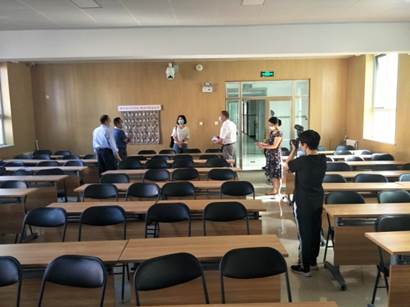 8月27日上午,教务处杨永杰处长、张红副处长等前往清河、北苑校区检查2020年秋季开学教学准备工作。清河校区叶克院长、诸刚副院长、北苑校区李英军副院长分别介绍了开学前各项教学准备工作,尤其是教学过程中疫情防控工作方案。随后杨永杰处长一行实地检查了两个校区的公共教室、专业教室、实验实训室等教学场所。两校区分别对教室、实验实训室进行了全面排查和设施设备检修、维护工作,制定了教学场所消杀方案,使用台账齐全。学生以学号固定座位,实现了学生在教学场所的活动轨迹可追溯。两校区教学工作准备充分,疫情防控方案完善。