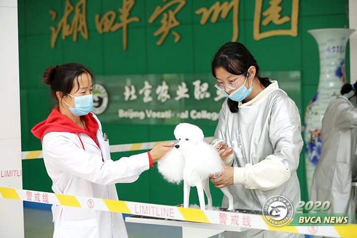 学生职业技能展示活动是“院赛”的同期活动。本次学生职业技能展示活动分为技能展示和大赛作品两大展区。活动领导小组在今年34个院级比赛项目中遴选出了“花艺设计与制作”“蔬菜中有机磷农药残留检测”“中华茶艺”“软笔书法”“银行业务”“无人机安装与调试”“宠物美容”等7个与市赛、国赛、行赛联系紧密的比赛项目,由学生现场进行技能展示。