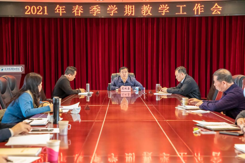 3月11日下午,学院召开2021年春季学期教学工作会,对本学期教学主要工作进行了全面部署。院长范双喜、院领导王晓华以及各系(部)、校区、实训中心、职业教育研究所、信息中心、教务处、教育研究督导室、专兼职督导员等相关部门主要负责人和工作人员共50余人参加会议。