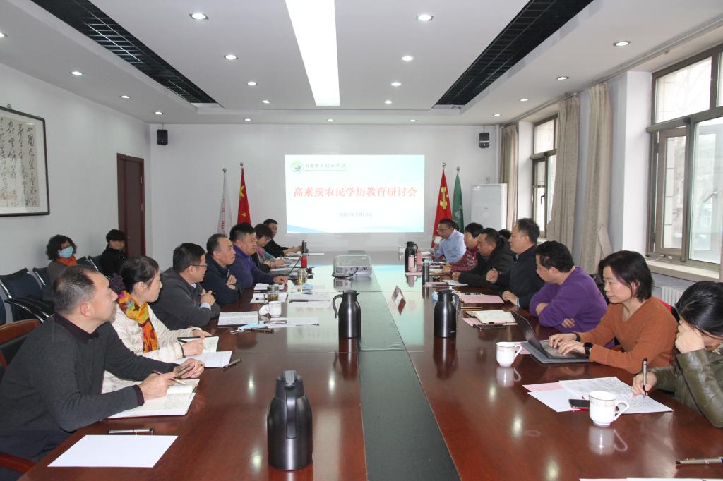 2021年12月8日,高素质农民学历教育研讨会在清河校区召开。院领导王晓华出席并讲话,教务处、教育研究督导室、学工部、招生就业处、清河校区和相关系部负责同志参加,会议由教务处处长杨永杰主持。
