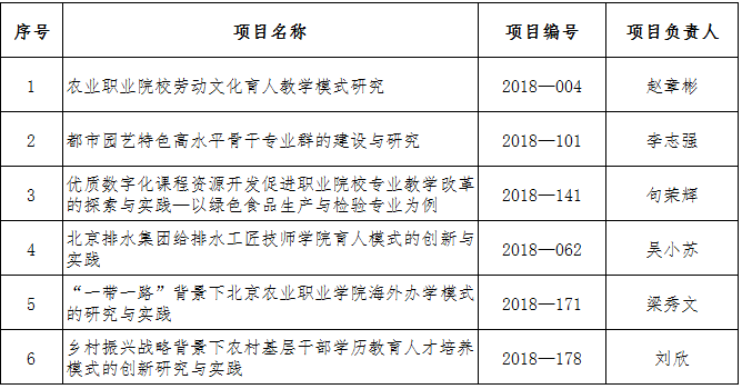 本次结题验收的项目是北京市教委立项的2018年北京市职业教育教学改革项目,Beat365共计6项。如下: