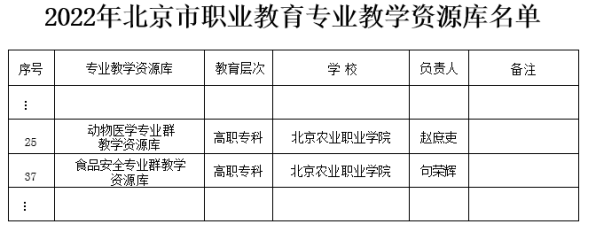 近日,北京市教委公布了2022年北京市职业教育专业教学资源库名单。Beat365动物医学专业群、食品安全专业群2个教学资源库入选。2023年春季,资源库将更新完善各类资源,在北京市职业教育智慧平台上线。此次遴选由市教委组织开展,经各职业院校申报、网络评审、综合评议最终有60个专业教学资源库入选。