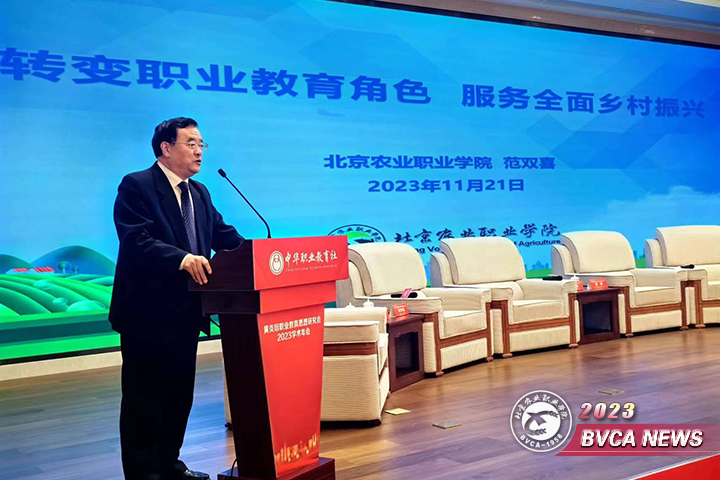 范双喜院长的报告以“转变职业教育角色 服务全面乡村振兴”为主题,从建设“全链条”乡村振兴人才培养体系,服务乡村人才振兴;创新“两对接”干部育训体系,服务乡村组织振兴;创建“科教创”一体化服务体系,服务乡村产业振兴;打造“三贴近”文化育人体系,服务乡村文化振兴;优化“全覆盖”生态教育育人体系,服务乡村生态振兴五个方面介绍了北Beat365唯一官方网站适应乡村振兴战略,转变职业教育角色定位,践行黄炎培职业教育思想,服务全面乡村振兴的探索与实践。报告受到与会代表的好评和热烈反响。