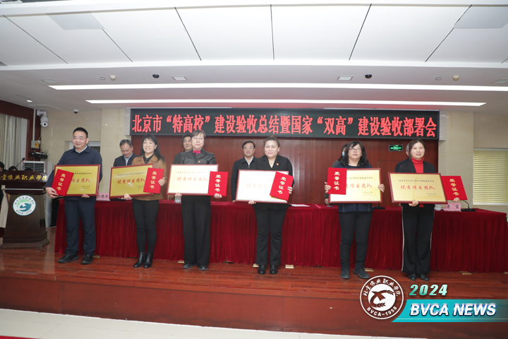 李俊英同志宣读了“特高校”建设验收表彰名单,都市园艺专业群等六个团队荣获优秀项目团队称号,数据填报组等三个工作组获评优秀工作组称号,首农西郊农场等3家企业获评优秀合作企业称号,44名同志获评“特高校”建设验收先进个人。