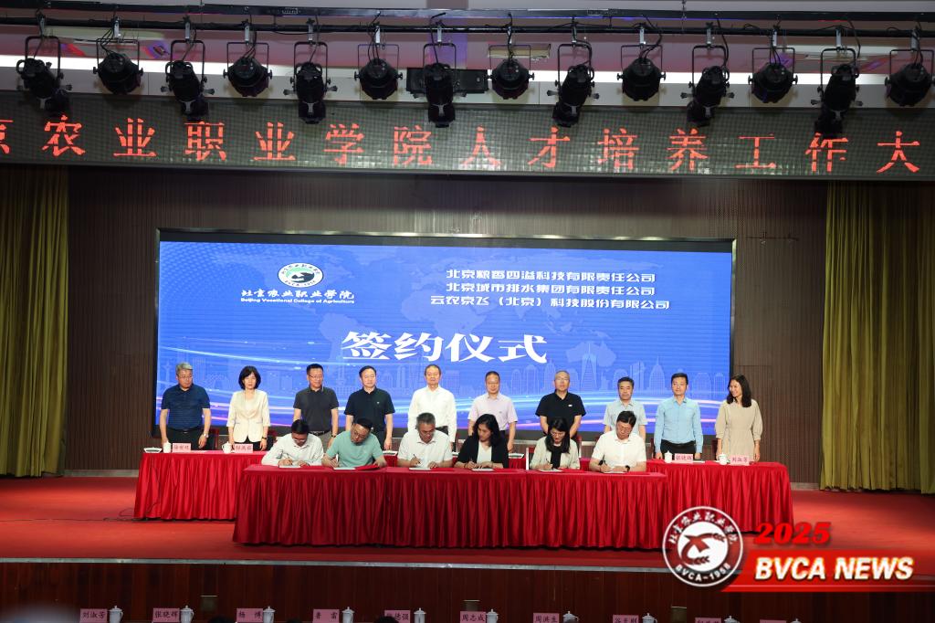 为深化产教融合,共育高技能人才,大会举行校企合作签约仪式。园艺园林学院、水利与土木工程学院、智慧农业工程学院分别与企业签署合作协议,进一步夯实了在人才培养、技术研发、资源共享等领域的合作关系,共育适应产业需求的高素质技能人才。