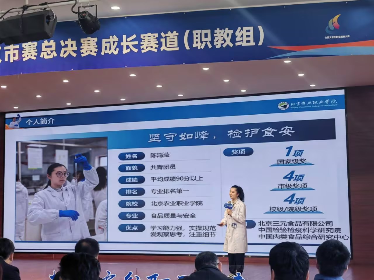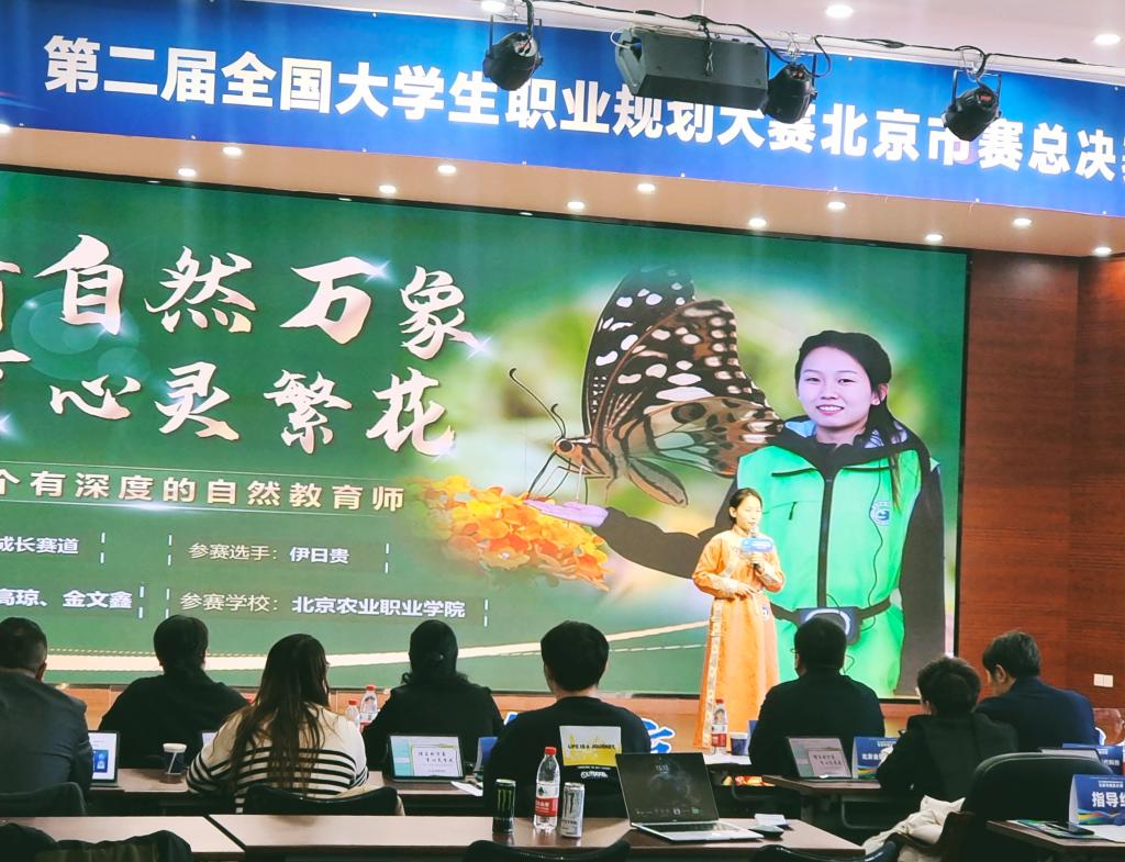 自大赛启动以来,学校高度重视,严格按照北京市教委要求精心组织校赛选拔,校内外指导教师全程跟踪、精准辅导,围绕市赛、国赛标准精细打磨参赛材料。四位参赛同学结合自身专业,紧贴职业市场需求,展现了当代职教学子的职业理想与实践行动。立志成为自然教育师的伊日贵,表达了对自然的热爱与守护的初心;以食品安全检测员为目标的陈鸿滢,展现了扎实的专业素养与责任担当;于思腾瞄准智慧农业节水工程师岗位,在大胆探索中彰显稳健从容;柳荷琳则对乡村振兴协理员充满热忱,积极投身乡村建设事业。
