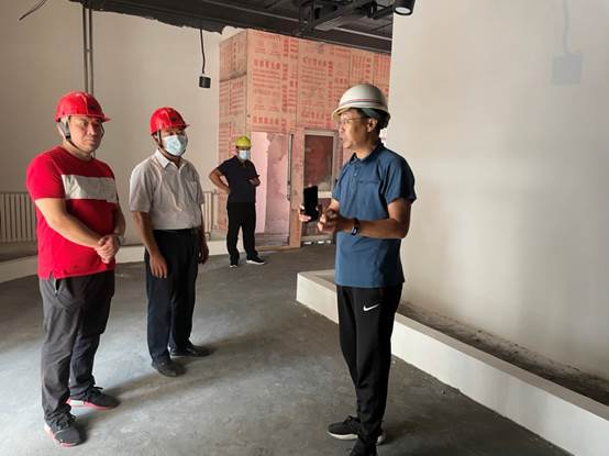 首先,大家来到创业园施工现场,认真听取了施工单位负责人对施工进度、安全作业等工作的汇报,徐洪飞处长根据学院关于假期的疫情防控要求以及施工安全,重点提出要加强对疫情防控程序、措施的履行,其中包括每日健康上报,三日核酸检测以及施工人员出入校的审批手续等,在现场抽查了施工工作人员的健康台账,并要求国庆期间施工现场进行封闭式管理,将各类安全隐患消灭在萌芽状态。