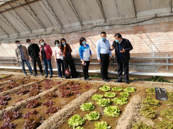 当前,一手抓疫情防控,一手抓南繁科研项目,科研处处长郝婧、园艺系主任李志强、实训中心主任李志莲等同志对工作开展的基本情况进行了简要介绍。院长范双喜同志听取汇报,与园艺系南繁育种准备和生菜品种示范项目科研团队人员进行了沟通与交流,并对生菜品种示范的科研实施工作进行了现场指导。