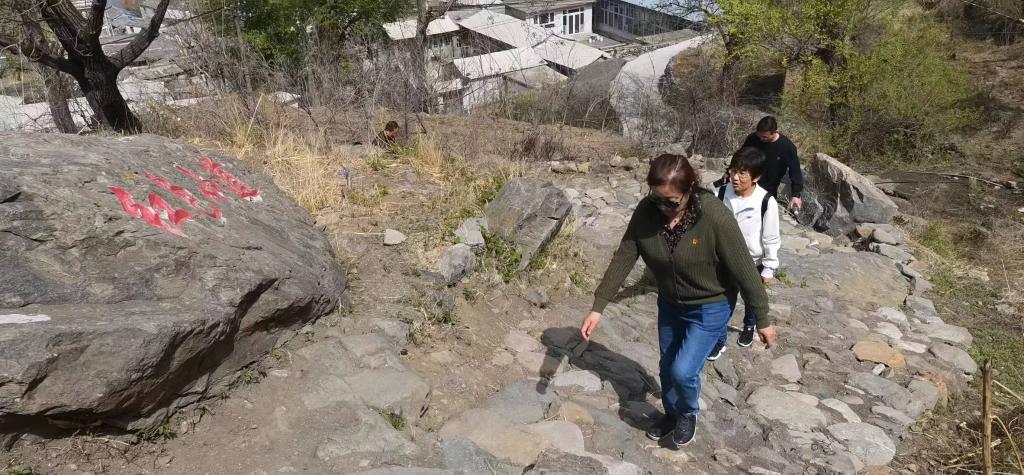 随后,一行人到房山区佛子庄乡贾峪口村科技小院调研。村党委书记刘天俊感谢学院持续提供技术支持和帮助,并介绍了科技小院取得的主要成效、发展思路和未来规划。科技小院负责人高照全教授多年倾力付出和精心打造,围绕当地主导产业振兴,以技术示范和科技培训为抓手,以解决产业难题为突破,以科技项目为依托全面开展技术帮扶,建成白海棠特色果园现代化生产技术示范园,为山区农业发展打造了成功样板。支部书记郝婧同志表示,科研处要深化科技人才资源和产业紧密对接,加强院乡合作,擦亮北京科技小院“金字招牌”,书写科技强农新篇章。