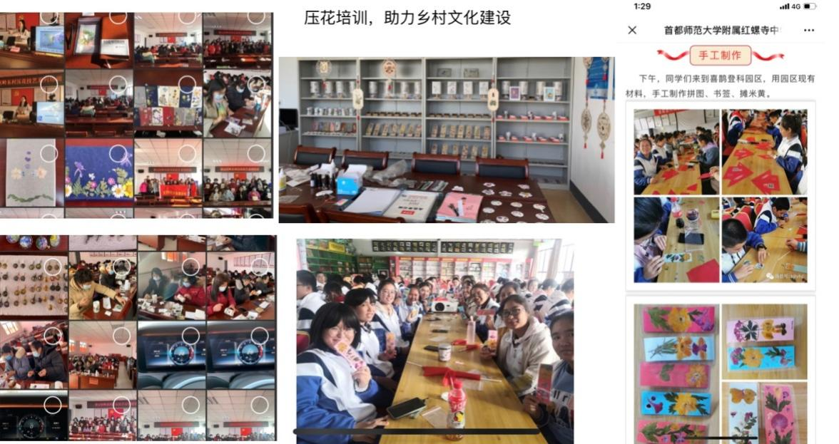 持北京市农委项目在北京郊区建立压花示范推广基地8个,压花体验项目成为示范园区亮点项目。“十三五”期间,30多万人参与了压花体验,压花艺术在北京得到普及推广。通过基地带动附近村民一同发展,为村里闲散妇女劳动力创业就业提供了渠道,同时提升了村民的精神面貌。通过编写压花制作科普图书,开展中小学生学农教育,培训中小学生达万余人。通过高素质农民及村务管理开展压花教学,推广压花技术,带动京郊农户增收致富,助力美丽乡村的建设。